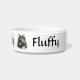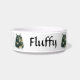 Personalize for a special cat. The name and cat artwork repeat 3 times around the bowl.
