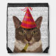 Tortoiseshell Cat with Party Hat Drawstring Bag