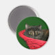Tortoiseshell cat in a red basket Christmas photo magnet