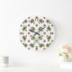 Personalize this kitchen coffee themed wall clock with your monogram. Created with a repeating pattern of dark green retro style cups accented with brick red starbursts. Your choice of round or square.