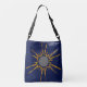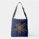 Image of the Sun covered by the dark Moon, only corona visible. Text: Total solar eclipse, August 21, 2017. Dark blue background. Funny customizable cross body tote bag. Customizable. You can change the style of the back, the image, template text and the color of the background. Have fun!
