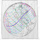 Path of the total solar eclipse of April 8, 2024 represented on a global map from NASA that shows the times of the transit and the point of greatest eclipse. Note that the narrow path of totality for North America begins on the Pacific border of Mexico and travels Northeast through Texas and Midwest states, exiting on the eastern border of Maine and into New Brunswick Canada.
