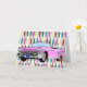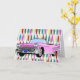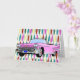 Fifties background design in pink, lemon yellow, turquoise, and a deep red. Pink convertible Cadillac with fins in the foreground. Customize this card and use it for whatever you want....anniversary, retirement, birthday, or an invitation.