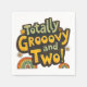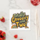 These playful toddler birthday party napkins feature a bold, retro-style font with a groovy vibe to showcase the phrase 'Totally Groovy and Two!'. It has warm and earthy tones