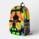 A wild fun cartoon style retro new wave black and colorful nostalgic fun multi color crazy neon nineties vibe electrifying epic retro style abstract fluorescent flashback vintage aesthetic deluxe fun cute all-over style unique backpack fun book bag for school or life. Get a super fun patterned backpack today.