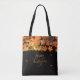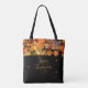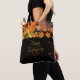 Black tote with warm autumn motifs – leaves, pumpkins, and golden hues.