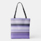 This lovely tote bag is shown in a purple stripes print.