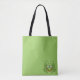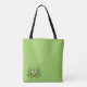 Tote bag is shown in the color lime green with a cute cartoon grasshopper print, customize this tote and add more like a name or buy as is.