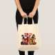 The printing came out very well, better than I had anticipated. The natural color fabric is sturdy with strong seams and comfortable handles. This tote fits easily over my shoulder. As it is filled, the bottom flattens out--very cool! I would buy this product again. This grocery tote holds a lot of groceries! The image quality was very good. The colors were a little darker than I had expected. The darkness may have been due to printing on a natural color fabric rather than on white. The cat design is attractively centered on the tote. The spirit of the design is very lively, just as it appears on the Zazzle website.