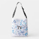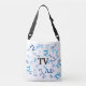 Personalize with one or two initials and the bag will show a central large initial/s in black. Jumbled around the entire bag will be the same letter/s in various sizes and shades of blue.