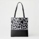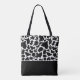 This cute stylish tote bag is shown in a Black and White cow spotted print.