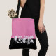 This cute stylish large tote bag is shown in hot pink and black color block with the special text Vegas.