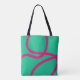 Abstract tote bag featuring bright pink lines on a bold green background. Eye-catching and colorful, ideal for creative personalities who love unique accessories.