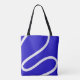 Tote bag moderna con líneas blancas sobre fondo azul vibrante. Fresca y llamativa, combina funcionalidad con un estilo artístico contemporáneo.