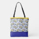TOTE w/ INITIAL BIRD BLUEBERRIES BLUE YELLOW Bag