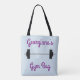 This tote design features a simple representation of a barbell, along with a personalized name and the words "Gym Bag".