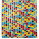 A design made up of stripes with hand painted bands, blocks and spots of color in shades of of red, amber, deep gold, blue, grey black and white. Inspired by painted totems.