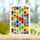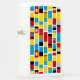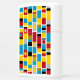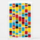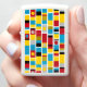 A design made up of stripes with hand painted bands, blocks and spots of color in shades of of red, amber, deep gold, blue, grey black and white. Inspired by painted totems.