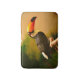 Tropical and exotic portrait of a toucan bird stood on a branch with it's bright orange beak prominent.