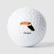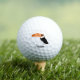 This toucan design golf ball is white and dimpled, with a diameter of at least 1.680 inches (42.67 mm) and a mass no more than 1.620 ounces (45.93 grams). The dimples on the surface are crucial for aerodynamics, reducing drag and allowing the ball to travel farther. Golf balls are designed with multiple layers to optimize distance, spin, and feel. Toucan design golf ball
