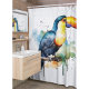 Transform your bathroom into a lush tropical sanctuary with this striking watercolor shower curtain. The design features a majestic Toucan rendered in a modern splash art style, creating a bold visual statement with deep tropical blues and brilliant oranges. The fluid watercolor technique brings the exotic spirit of the rainforest to life, making this curtain a vibrant focal point for any home. It is an artistic masterpiece for nature enthusiasts and bird lovers who appreciate the vivid, expressive beauty of exotic wildlife art.