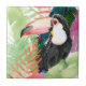 Toucan Portrait with Tropical Leaves Ceramic Tile