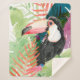 Toucan Portrait with Tropical Leaves Sherpa Blanket