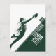 This highly customizable football-themed postcard provides an action scene where a football player flies to catch the ball over the touchdown line. This is a great design for pro or amateur American football players where you can customize the name, the jersey number, and the message.