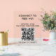 A modern business tabletop sign design allowing your customers to connect to the free WiFi. A minimalist personalized scan and connect business sign. Customize the text and make it your own..