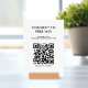 A modern business tabletop sign design allowing your customers to connect to the free WiFi. A minimalist personalized scan and connect business sign. Customize the text and make it your own..