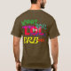 My 11 yo wore adult XL (5’7” 165#). The 8yo is small framed. She wore adult small and tied it in the back. Grandma wore adult large with long sleeve shirt underneath. Tall girl adult medium. Dark haired male adult large. Good quality dark Heather gray, Gildan brand shirt. -it was next up from basic choice and cost about $20 per shirt. Not too thick or thin. Washed and dried well, no major shrinkage. Not see-through. Can wear a bra under it fine. Screen print is just as shown and well done, front and back.