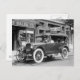 1920s tire puncture test. Lee Tire Comapny test with antique car up on on beds of nails, 1922. Nice view with old store front advertising signs.