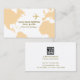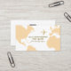 Nice contact card to promote yourself with elegance... front side: oversized salmon color map of the world and a faux gold airplane, name and profession (tour guide, travel agent...), and custom slogan (here we go again); back: lines of text (business name, phone, email and address) on white and clear background with Company logo.