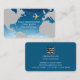 Nice contact card to promote yourself with elegance... front side: oversized pale gray map of the world and a faux gold airplane, name and profession (tour guide, travel agent...), and custom slogan (here we go again); back: lines of text (business name, phone, email and address) on blue sky background with Company logo.