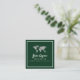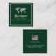 An elegant square business card for a professional who works with guided small group tours... map of the world, logo, script name, profession and additional information... dark green background with thin white frame.