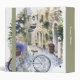 Beautiful, watercolor of a blue bicycle with a basket of purple flowers, parked on the cobblestone street, with village shops in background. Make this yours by customizing the spine title. Useful ideas for scrapbooking, photo album, your family travel planning, recipe book, wedding album, students or teachers.
