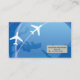 Stylish business cards with white airplanes around blue globe. Perfect for Travel Agency, Tourism Firm and tour guide. Easy to customize with your information.