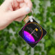 The key chain is made of metal and really sturdy. The flower design is really cheerful. The logo and colors are clear and crisp!