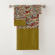 I ordered these towels because I am getting ready to stage my house for sale and wanted some really pretty towels to show off the bathroom. These are an absolutely perfect match for the teal walls and I could not be more pleased. Not only do they look beautiful, they also seem to be very good quality. They are different than any other towels I've had, as the surface fibers are not looped. I love that because I have never liked how most towels have loops that snag and pull no matter how careful you are. I pre-washed them and they came out beautifully. The towels are generously sized and they don't feel flimsy at all. I did not read the description well enough to understand I was paying as much as I was paying for just exactly what was pictured: not a set of two, but a single towel, hand towel and washcloth, so they are way more expensive than I thought (which was a lot, considering). However, I still love them enough that I went ahead and ordered a single additional bath towel so that I would have an actual set, but will need to buy a couple of solid color washcloths. Pricing is weird, because a single wash cloth is priced higher than a large bath towel?? Anyway, if you can afford them, these towels are fantastic. I would never pay this much except to show off a house for sale, but now that I've done it I will love them in my new home as well. Gorgeous! Vibrant Colors and exactly as pictured,..maybe evern better!