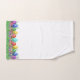 Boldly colored Easter eggs "hide" with jelly beans and Easter candies in Easter grass of pink, green and yellow. This wonderful, colorful design is offered as a border on this marvelous towel set.