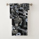 This fabulous, computer-generated design features layer-upon-layer of screws and nuts and bolts and washers, making it an excellent choice for your favorite handyman or mechanic. Countless shades of gray and silver rest on a black backdrop in this decidedly "masculine" design. This fabulous towel set makes an excellent addition to the "man cave" or other locations where there may be showers to be used by mechanics. It also makes a great Father's Day gift.