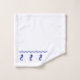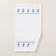 Sea horse graphic in blue. Three animals in middle of towel. Borders on all pieces show five seahorses in a row beneath scalloped wave pattern.