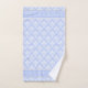 Original damask is actually a type of fabric which uses various weaving techniques and various threads to create alternating sheens resulting in a tone-on-tone design. In original damask, the pattern was actually woven into the fabric, making the fabric reversible. A more modern adaptation would be the fabrics created on Jacquard looms. These machined damasks were less expensive and succeeded in bringing this more affordable damask to the middle class. This design is a salute to that thousand-year-old art of damask weaving. The white flourish is only just visible on the wedgwood-esque blue backdrop. This lovely overall design is beautifully anchored with a slightly dimensionalized flourish border. This beautiful towel set adds soft elegance to your bathroom decor.