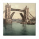 A vintage image of the Tower Bridge in London, England, which was taken towards the end of the 19th century. The photograph shows the famous bridge closed to traffic to allow a boat to pass under as it travels along the Thames River. Photograph courtesy LOC (LC-DIG-ppmsc-08567).