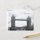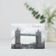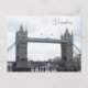 View of Tower Bridge on the Thames River with the text "London" over the right column of the bridge