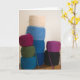 Towers of yarn cakes teeter in anticipation of growing into a finished object.