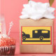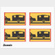 An icon of a car towing a caravan. This design looks really effective on these Stickers
