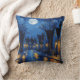 Town at night with lights and lanterns throw pillow
