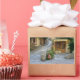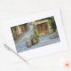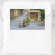 Rectangular photo sticker with a typical French townscape with a gourmet store front and cobblestone streets in the traditional town Beynac-et-Cazenac along Dordogne river in Perigord region, France.