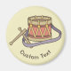 Toy drum icon with strap and drumsticks in vintage color palette. Custom text.